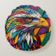 Vibrant and colourful eagle artwork. The eagle's head is depicted in a striking style with layers of bold, geometric shapes and bright colours, including reds, blues, greens, and yellows. The feathers are stylised with intricate detailing, showcasing a variety of shades that create a sense of depth and movement. The background consists of similarly colourful geometric patterns that enhance the overall dynamic composition. The eagle's piercing eye adds an intense focal point to the piece, conveying strength and majesty.