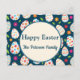 This is cute Custom Easter Holiday postcard featuring colourful decorative eggs pattern with flowers in pink, orange on dark blue background. There is custom name , return address and custom message in the back that you can change to your family name by using personalise button.