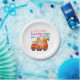 Colourful Trade Easter Eggs for Carrots Bunny Bus Paper Plate. A cute Easter bunny driving his carrot bus and willing to trade a basket full of Easter Eggs for Carrots. Great for annual Easter Egg hunts, family traditional Easter egg hunts, dinners, Easter parties, community events, employer events, family gatherings or to simply have fun. The typography is colourful and easy to read.