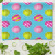 Colourful Easter Eggs On Polka Dot Background Tea Towel