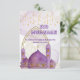 Celebrate the spirit of Eid with this vibrant and festive Eid Mubarak greeting card. The design features a beautifully illustrated mosque adorned with delicate minarets, surrounded by colourful floral details and traditional hanging lanterns.