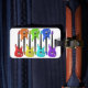 This design is a group of colourful electric guitars. There is multiple guitars and each one is a different colour. This colourful electric guitars design looks great on this Luggage Tags