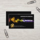 Riding this lightning is the job title "electrician" and a slogan caption to publicise your service. ; Change the caption remarks to suit your own service needs. Just above this is your prestigious name. Southwards to the base of the card is a faux gold home power plug logo you can use with its contact details beside it.