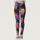 Colourful Elegant Flowers on Black Stylish Floral Leggings