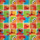 Check out this fun pattern featuring Elmo in various poses popping out of colourful grid squares! © 2021 Sesame Workshop. www.sesamestreet.org