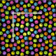 Orange, pink, purple, green, blue, and yellow faces on a black background cover this design.
