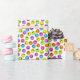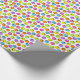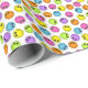 Orange, pink, purple, green, blue, and yellow emoji faces on a white background cover this wrapping paper.