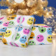 This fun and colourful wrapping paper is perfect for any occasion with a pattern of cute cartoon emoji faces in yellow, pink, orange, green and blue. The round faces have a hand-drawn style.