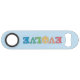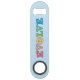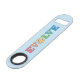 Colourful bottle opener sharing a message of peace. The design shows the word evolve with the letter O replaced with a round peace symbol. The letters are colourful and set against a blue background. Great way to promote peace and invite everyone to move away from conflict and create peace and harmony in the world and their surroundings.