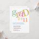 Let these youthful and chic invitations reflect your young graduate's personality. The word "grad" is laid out in a fun and colourful pattern with your important party information set below. The graduate's name is proudly highlighted in a classy and bold typeface.