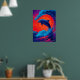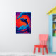 A vibrant expressionist dolphin soaring through a dramatic ocean wave beneath a blazing sunset. Bold contrasting colours and fluid movement create a powerful symbol of freedom and ocean energy. Perfect for beach house decor, marine life lovers, and modern artistic interiors.