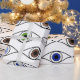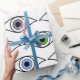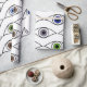 This striking pattern features rows of stylised eyes in a bold, graphic style. Each eye is outlined in crisp black, with irises in a variety of colours including blue, green, brown, and violet, creating a dynamic and captivating look. The design balances symmetry with variety, giving it a hypnotic, almost surreal feel. The repetition of watchful eyes across a clean white background evokes themes of awareness, mystery, and symbolism, while the colourful irises add a pop of vibrancy. Perfect for those drawn to modern, symbolic, or slightly edgy aesthetics.