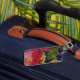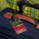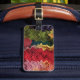 Make your luggage stand out on an airport carousel with unique tag designs! This colourful fine art luggage tag features an image of a contemporary abstract fabric pattern in wavy psychedelic rainbow colours of pink, red, yellow, orange, green, blue, brown, mauve, purple and turquoise which resembles a painter's palette. Customise the text on the reverse side with your personal information.