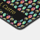 Stylish modern desk mat features faceted gemstones on black background and customisable text band to personalise with name or monogram