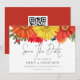 Colourful Fall Florals QR Code Wedding. Gorgeous florals in autumn shades of red yellow and orannge and an elegant set script for Save The Date. The rest of the text you can easily personalise with your details. Add your QR code to your wedding website on the back or delete this and the text on the back if not required.