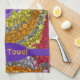I like to keep my hand towel separate from the dish towel and it's tough for other people to know which to use. Here's an idea using a colourful kitchen towel design sporting a bounty of fall coloured mini boxes. A purple colour (plucked from the design) band and oval along the bottom allows text to stand out from the design. Fill in the template field with your words or family name, initial or click the customise to select a font style, size and colour you prefer. You can select from one of the other towels with the same design but different colour text band for the hand towel.