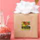 A colourful Thanksgiving day Greeting sticker, with grapes, pumpkins and lovely fall leaves.