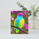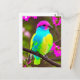 Colourful Fantasy Bird On a Branch With Flowers Postcard