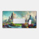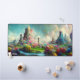 Cool colourful, fantasy panoramic landscape with colourful trees and river with fantasy buildings in the background.