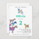 Farm Goat 2nd birthday party invitation for the child that loves farm animals. Cute colourful, psychedelic goats in vibrant pink, purple, blue, orange, yellow and aqua with pigmy goat, baby goat and goats standing on goats. This fun barnyard animal birthday party invitation is easy to personalise to create a unique fun birthday party invitation ideal for children and adult goat lovers. Original artwork by artist Catherine Sweetman