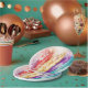 Very colourful modern paper plate, with watercolor artwork of red, yellow, purple and teal feathers. Great for any occasion. Matching products are available.