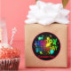 Colourful Festive Happy Birthday Customisable Round Sticker. Party supplies for your special birthday party. @Miri Creations - Created For You Only with You in Mind