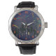 This is a Very Colourful Fireworks Over the City Skyline Sketch Wrist Watch