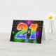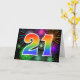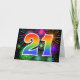 The front of this exciting, fun, and vibrant greeting card design features a colourful celebratory fireworks inspired pattern, along with the number "21" having a multicolored rainbow like gradient pattern, on a black coloured background. The inside features a customised greeting message, or could perhaps be cleared and left blank if a message is to be written by hand instead. A greeting card like this might be a fun way to celebrate somebody’s twenty first birthday, or perhaps a couple’s twenty first wedding anniversary, or some other 21st event. [~Z0000342]