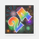 This exciting, fun, and vibrant paper napkin design features a colourful pattern inspired by celebratory fireworks, along with the number "24" featuring a multicolored rainbow inspired gradient pattern, on a black coloured background. Paper napkins like these might be fun to use at a celebration being held to honour somebody’s twenty fourth birthday, or perhaps a couple’s twenty fourth wedding anniversary, or some other 24th event. [~Z0000340]