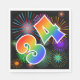 This exciting, fun, and vibrant paper napkin design features a colourful celebratory fireworks inspired pattern, along with the number "34" featuring a multicolored rainbow inspired gradient pattern, on a black coloured background. Paper napkins like these might be fun to use at a party being held to commemorate somebody’s thirty-fourth birthday, or perhaps a couple’s thirty-fourth wedding anniversary, or some other 34th event. [~Z0000340]