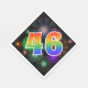 This exciting, fun, and vibrant paper napkin design features a colourful celebratory fireworks inspired pattern, along with the number "46" featuring a multicolored rainbow inspired gradient pattern, on a black coloured background. Paper napkins like these could be fun to use at a party being held to honour somebody’s forty sixth birthday, or perhaps a couple’s forty sixth wedding anniversary, or some other 46th event. [~Z0000340]