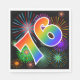 This exciting, fun, and vibrant paper napkin design features a colourful pattern inspired by celebratory fireworks, along with the number "76" featuring a multicolored rainbow like gradient pattern, on a black coloured background. Paper napkins like these might be fun to use at a party being held to commemorate somebody’s seventy sixth birthday, or perhaps a couple’s seventy sixth wedding anniversary, or some other 76th event. [~Z0000340]