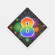 This exciting, fun, and vibrant paper napkin design features a colourful pattern inspired by celebratory fireworks, along with the number "8" having a multicolored rainbow like gradient pattern, on a black coloured background. Paper napkins like these could be fun to use at a party being held to commemorate somebody’s eighth birthday, or perhaps a couple’s eighth wedding anniversary, or some other 8th event. [~Z0000340]