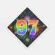 This exciting, fun, and vibrant paper napkin design features a colourful celebratory fireworks inspired pattern, along with the number "97" having a multicolored rainbow like gradient pattern, on a black coloured background. Paper napkins like these could be fun to use at a party being held to honour somebody’s ninety seventh birthday, or perhaps a couple’s ninety seventh wedding anniversary, or some other 97th event. [~Z0000340]