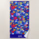 Colourful Fish Art Deco Custom Text Monogram Beach Towel