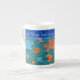 A colourful Bone China Mug to personalize, with a pattern of colourful fish swimming in the ocean, from a whimsical hand-painted paper collage by Judy Adamson. Part of the Posh and Painterly 'Fish in the Sea' collection, this design can be adjusted to fit any Mug.