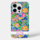 Customise this colourful underwater scene with fish of all different bright colours iPhone 15 pro case with your your name in a trendy modern CAP font in pink on white. It's so modern and trendy!