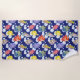 Colourful Fish White Bubbles on Deep Blue Background Beach Towel