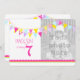 Cute modern bunting flags colourful girls, add your own photo seventh birthday party invite. Personalise this colourful kids invite with your own party invitation wording. Perfect to invite your daughter's favourite friends to her 7th birthday party. Customise with your own photo and name. Uniquely designed and illustrated by Sarah Trett.