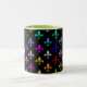 Colourful fleur de lis pattern on black Two-Tone coffee mug