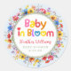 Colourful Floral Baby in Bloom Baby Shower Favour Classic Round Sticker