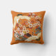 Cranes and Sakura in a Colourful Vintage Pattern - Japanese Bird and Floral Folk Fashion on an Orange Background.
