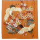 Cranes and Sakura in a Colourful Vintage Pattern - Japanese Bird and Floral Folk Fashion on an Orange Background.