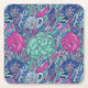 Colourful Floral Doodle Pattern Square Paper Coaster