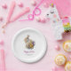 This collection of Easter invitations features whimsical watercolor Easter bunnies surrounded by elegant spring flowers.