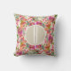 Colourful Floral Flowers Rustic Kraft Monogram Pillow.