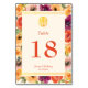 Colourful floral frame beige Chinese wedding Table Number