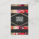 A chic, glamourous design featuring unique typography on diamond emblem lined in FAUX gold foil fuses vintage with modern. Horizontal colourful red, pink, turquoise and purple flower painting on digital image of gold leaf background.. Premium card stock is recommended for darker designs for protection against small surface scratches and to assure a sharp rich print. Please note this is a digital image of gold - NOT the real gold foil. This hip cosmopolitan card is also ideal for anyone in the fashion or entertainment industry, ie; beauty salons, spas, boutiques, jewellery designers, hair stylists, event and wedding planners, bloggers, interior designers and more.