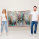 Colourful Floral on Blue Beige White Lavender Throw Blanket