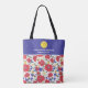 Super cute double-sided tote bag for your pickleball paddle and gear. Design features a yellow pickleball, two lines of custom text set above a colourful flower print. Get matching totes for your club, team or pickleball trip . . . Makes a nice gift for the pickleball player in your life.